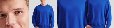 Lightweight unbrushed fleece. Raglan sleeves. Neck, waist and cuff in cotton/Lycra® rib. Produced using Belcoro® yarn for a softer feel and cleaner printing process.