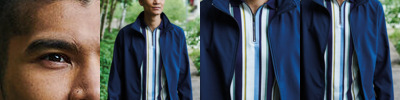 Impressive styling details, fabulous cut and 5% Lycra. Beautifully soft handfeel. Slim fit. Contrast buttons. Short leaf collar. Strip of self colour fabtic along shoulder seam. Shorter side vents with herringbone tape.