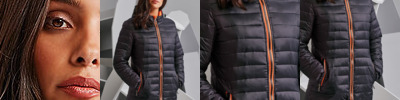 Warm and versatile padded jacket. Water resistant. Wind resistant. Warm polyfill quilted lining. Fully lined hood with adjusters. Full zip with zip guard. Two interior pockets. Two zippered front pockets. Elasticated cuffs. Decoration flexible concealed interior zip. Easy re-label system.