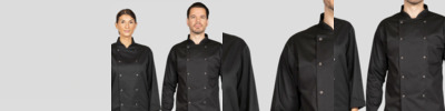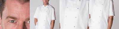 65% polyester/35% cotton. Unisex styling. Mandarin collar stand. Stainless steel stud closure. Industrial or domestic wash 60°C. Available in long sleeve AF001.