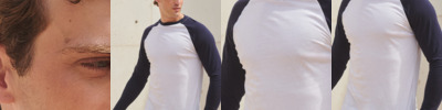 100% cotton.* Single jersey. Contrast stretch ribbed collar. Taped neck. Contrast raglan sleeves. Side seams. Longer length. Twin needle curved hem. Tear out label.