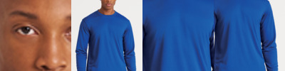 SuperCooltm fabric with superior wicking properties and anti-bacterial finish. UPF 30+ UV protection. Self fabric sapphire blue taped neck. Locker patch. Self fabric collar and side panels. Twin needle stitching.