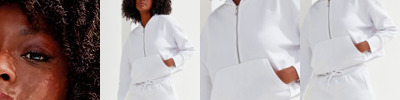 Oversized hooded sweatshirt with high-shine 1/2 zip detailing to neck. Kangaroo pockets to front. Ribbed cuffs with thumbhole detailing. Panel detailing to back with curved hem design that wraps round to front. Brushed-back fleece inner. We recommend using block out vinyl and inks.Product contains no branded neck or waist label. Removable Kimble or looped garment tags. Inner seam label holds important product information on one label with a second label containing brand information which can be cut-away. Contains recycled polyester.