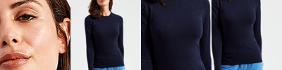 Women’s long sleeve underscrub baselayer. Comfortable four-way stretch. Breathable, easycare, crease-resistant fabric. Deodorising properties. Crew neck, raglan stitched sleeves. Seamless body with jacquard pattern. Decorate with embroidery and/or print. Contains recycled nylon.