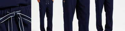 Men’s cargo scrub pants. Comfortable four-way stretch. Breathable, easycare, crease-resistant fabric. Single-button waistband with adjustable drawcord and zip fly. Multiple mobile-friendly coin and zip pockets. Hemmed side vents. Decorate with embroidery and/or print. Contains recycled polyester.
